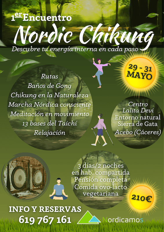 Usamos los bastones de marcha nórdica como soporte a los movimientos lentos que realizamos en Chikung.